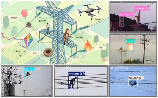 - Wang, S.; Tan, W.; Yang, T.; Zeng, L.; Hou, W.; Zhou, Q. High-Voltage Transmission Line Foreign Object and Power Component Defect Detection Based on Improved YOLOv5. J. Electr. Eng. Technol. 2024, 19, 851–866. [Google Scholar] [CrossRef]