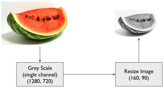 The experiment data was simplified to evaluate the most fundamental non-trivial version of the problem. Images were converted to a single grayscale channel and resized to 160 by 90 pixels. A diagram showing the two processing steps is shown in Figure 3.