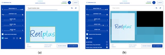 Calibration views. (a) Screen for creating a customized calibration by the specialist; (b) calibration using field of view template.