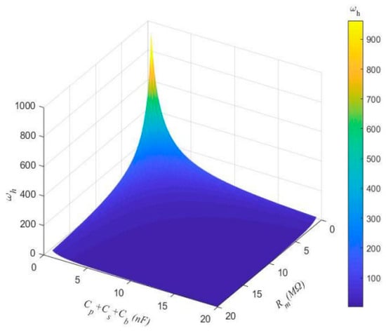 According to the Equation (8) and the previous analysis of the sensor’s coupling capacitor and structural capacitance, the effects of the sampling resistor and capacitor on the sensor’s cutoff frequency are illustrated in Figure 10. The figure shows that only when both Rm and Cb take relatively large values can the sensor maintain self-integration operation at the 50 Hz frequency.