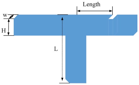 The T-shaped waveguide antenna is often introduced as a radiating waveguide, and the shape of the antenna resembles the letter “T”. The layout of the antenna is shown in Figure 2. A T-shaped waveguide antenna is designed in this paper by the proposed method.
