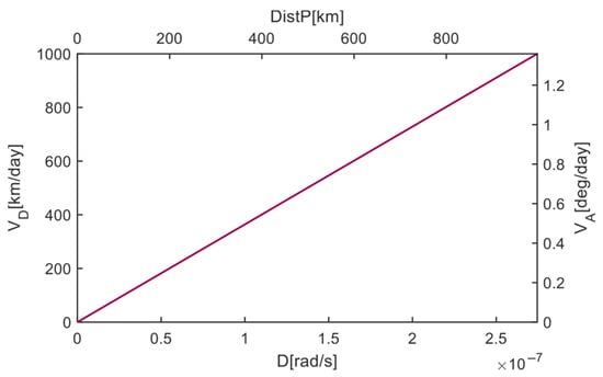 For GEO reference orbits, the relationship between the cruising velocity and parameters such as the relative drift rate is shown in Figure 3.
