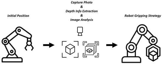 For complex tasks such as picking up stacked objects, a reliable strategy is crucial. For instance, Farag et al. [5] delve into the development of an effective sorting algorithm, specifically engineered for object classification based on color, in conjunction with a proficient robotic arm. The system comprises a conveyor belt, a precision-driven robotic arm, and a dedicated camera for RGB color-based object detection. This algorithm effectively identifies and localizes red, green, and blue objects. This capability allows the robotic arm to precisely pick items of the desired color from the moving conveyor belt and deposit them into corresponding bins. In-depth kinematic analysis of the robotic arm, precise object detection utilizing RGB color ranges, and autonomous object sorting collectively contribute to the system’s capabilities, achieving high sorting efficiency in optimized operations. Moreover, Capkan et al. [6] focus on robotic handling within industrial settings, specifically on objects with diverse geometric configurations. The study introduces two contributions: firstly, the configuration of a robotic arm designed for complex pick-and-place tasks, equipped with inverse kinematics and a virtual simulation environment; secondly, a revolutionary edge detection methodology grounded in knowledge-based rules, which generates stable training patterns and precisely identifies object centers. This approach achieved significant results by training a deep learning classifier, including AlexNet, GoogleNet, and ResNet, using edge image datasets. This approach enables autonomous object recognition, coordinate extraction, and seamless guidance of a microcontroller-controlled robotic arm for pinpoint pick-and-place operations more effectively than with raw images.