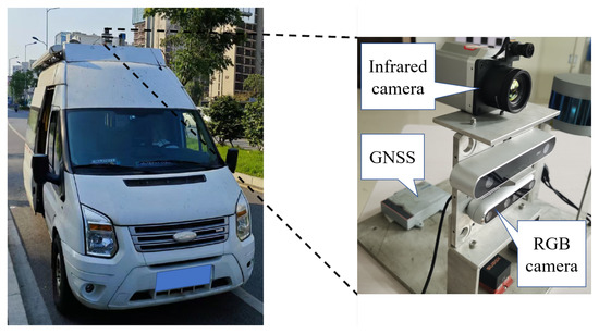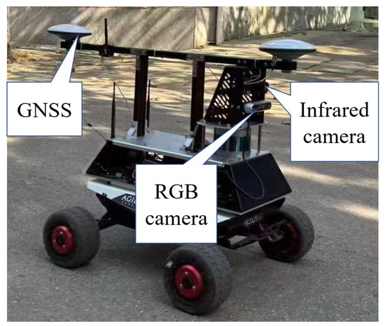 Vehicle for large-scene data collection, integrated with n RGB camera, an infrared camera, and an RTK positioning system.