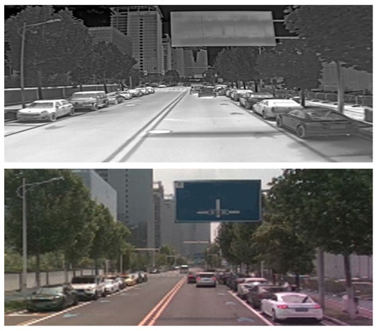 - A SinoGNSS GNSS data collection system. Dual antennas mounted at the vehicle’s front and rear enable real-time kinematic (RTK) positioning, achieving ground-truth pose estimation with localization accuracy better than 1.0 m. Figure 3 demonstrates street-view images captured by the dual-modal RGB–infrared camera pair.