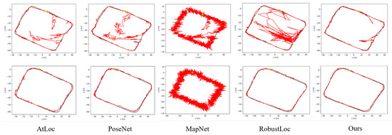 We selected several superior end-to-end visual localization methods for comparison with our proposed method, including PoseNet, MapNet, AtLoc, and RobustLoc. These methods exhibit good performance in end-to-end localization under uni-modal conditions using visible images, hence their suitability for benchmarking against our proposed method to validate its effectiveness. However, since their models are only capable of processing uni-modal data, when handling multimodal data simultaneously, the two input images need to be concatenated along the channel dimension, resulting in a doubling of the channel number. Consequently, we doubled the number of input channels in the feature extraction components of these models to accommodate the adaptive training and testing of multimodal data.