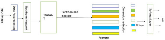 - Chen, H.; Lagadec, B.; Bremond, F. Partition and Reunion: A Two-Branch Neural Network for Vehicle Re-identification. In Proceedings of the IEEE/CVF Conference on Computer Vision and Pattern Recognition (CVPR) Workshops, Long Beach, CA, USA, 16–20 June 2019. [Google Scholar]