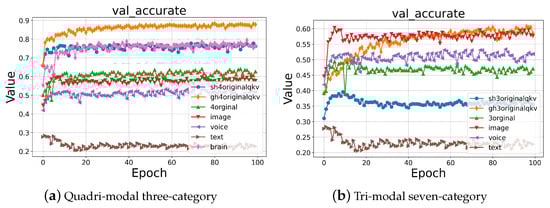 - Bagher Zadeh, A.; Liang, P.P.; Poria, S.; Cambria, E.; Morency, L.P. Multimodal Language Analysis in the Wild: CMU-MOSEI Dataset and Interpretable Dynamic Fusion Graph. In Proceedings of the 56th Annual Meeting of the Association for Computational Linguistics (Volume 1: Long Papers), Melbourne, Australia, 15–20 July 2018; Gurevych, I., Miyao, Y., Eds.; ACL: Austin, TX, USA, 2018; pp. 2236–2246. [Google Scholar] [CrossRef]