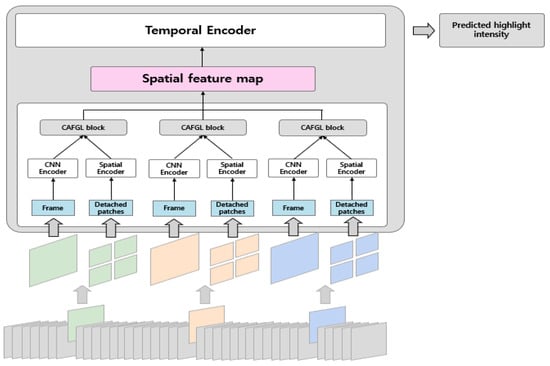 Previous studies have primarily focused on effectively learning global context through Transformer-based architectures; however, viewers’ actual interests are often based on subtle object changes or localized movements within videos. This study distinguishes itself by combining the global representation learning capabilities of Transformers with the local pattern extraction strengths of convolutional neural networks (CNNs), thereby enabling the capture of fine-grained spatial information that conventional models often overlook and achieving more precise highlight prediction. The overall architecture of the proposed model is illustrated in Figure 1.