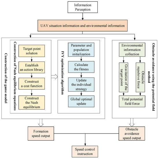 The experimental results verify the superiority of this method in multiple performance indicators. Especially in terms of path planning, formation restoration accuracy, restoration speed, and obstacle avoidance efficiency, it performs significantly better than improved APF, the Particle Swarm Optimization (PSO) algorithm, and the Ant Colony Optimization (ACO). In particular, the combination of the game model based on the Nash equilibrium and the Ivy algorithm enables UAVs to effectively improve task execution efficiency and robustness while ensuring the stability of the formation.