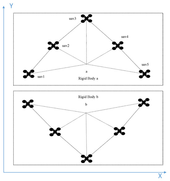 Figure 4. The target points of UAVs after the overall movement of the formation are calculated using the virtual structure method, with the formula as follows: