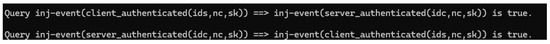 Formal verification result of mutual authentication using ProVerif.