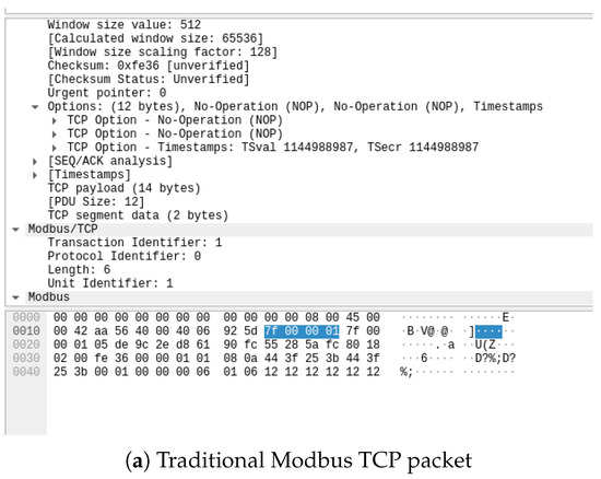 - Luo, X.; Li, Y. Research and implementation of Modbus TCP security enhancement protocol. J. Phys. Conf. Ser. 2019, 1213, 052058. [Google Scholar]