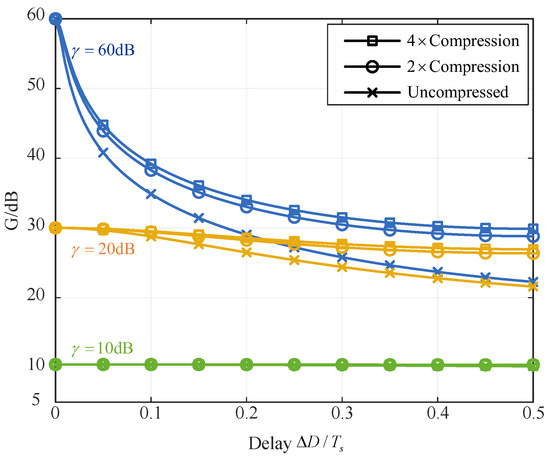 - Simulations validate the theoretical analysis, showing that under a normalized delay of 0.5, the 2-fold compressed receiver achieves 6.9 dB better suppression than the uncompressed receiver.