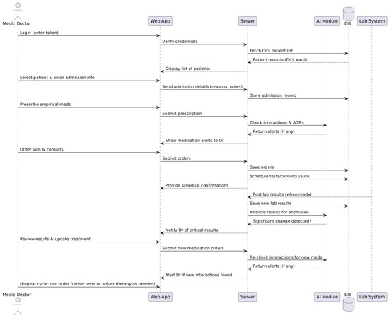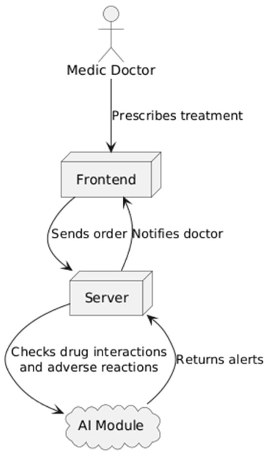 Our solution combines an AI-based system with a doctor workflow-centered architecture to provide medication safety features and automated scheduling and real-time patient data analysis. The internal mechanisms of this AI-based system are detailed in Section 3.4, where the architecture of the dedicated AI module is explained. Moreover, the proposed system directly addresses existing challenges related to system integration and the limitations of current decision support mechanisms. By enhancing interoperability and embedding proactive decision-making capabilities, the platform aims to improve clinical workflow efficiency and reduce the likelihood of medical errors. These improvements are expected to contribute to more accurate diagnoses, timely interventions, and ultimately, better patient outcomes.