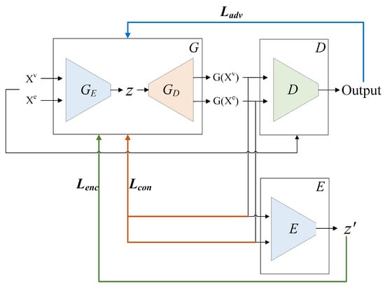 The synchronous encoder E encodes the latent vectors of the generated samples to calculate the encoding loss Lenc. By minimizing the difference between the latent features of the real samples and the generated samples, it guides the encoder GE to capture more critical and effective features. The representation of the latent space is optimized through the encoding loss Lenc:
