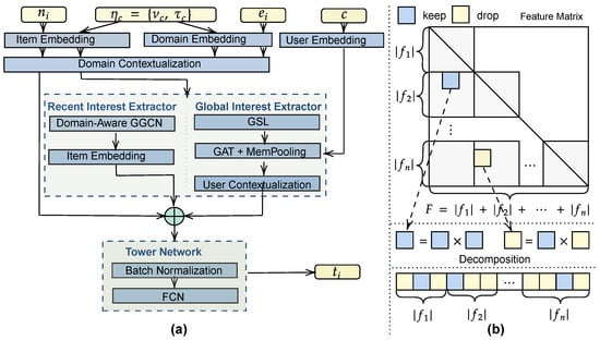 - Lin, G.; Gao, C.; Zheng, Y.; Chang, J.; Niu, Y.; Song, Y.; Gai, K.; Li, Z.; Jin, D.; Li, Y.; et al. Mixed Attention Network for Cross-domain Sequential Recommendation. In Proceedings of the 17th ACM International Conference on Web Search and Data Mining, Merida, Mexico, 4–8 March 2024; pp. 405–413. [Google Scholar] [CrossRef]