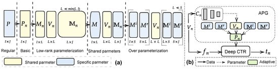 - Yan, B.; Wang, P.; Zhang, K.; Li, F.; Deng, H.; Xu, J.; Zheng, B. Apg: Adaptive parameter generation network for click-through rate prediction. Adv. Neural Inf. Process. Syst. 2022, 35, 24740–24752. [Google Scholar]