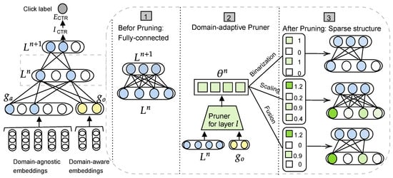 - Yang, X.; Peng, X.; Wei, P.; Liu, S.; Wang, L.; Zheng, B. Adasparse: Learning adaptively sparse structures for multi-domain click-through rate prediction. In Proceedings of the 31st ACM International Conference on Information & Knowledge Management, Atlanta, GA, USA, 17–21 October 2022; pp. 4635–4639. [Google Scholar] [CrossRef]