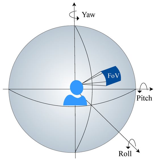In particular, 360-degree video has emerged as a popular form of content for VR experiences, also thanks to the diffusion of lightweight and low-cost capture devices. With 360-degree videos, viewers are surrounded by the media content, as if they were at the center of a sphere, thus allowing free exploration in all directions. This provides viewers with three DoF, allowing them to move their heads along three angles of movement, namely yaw, pitch, and roll, as shown in Figure 1.