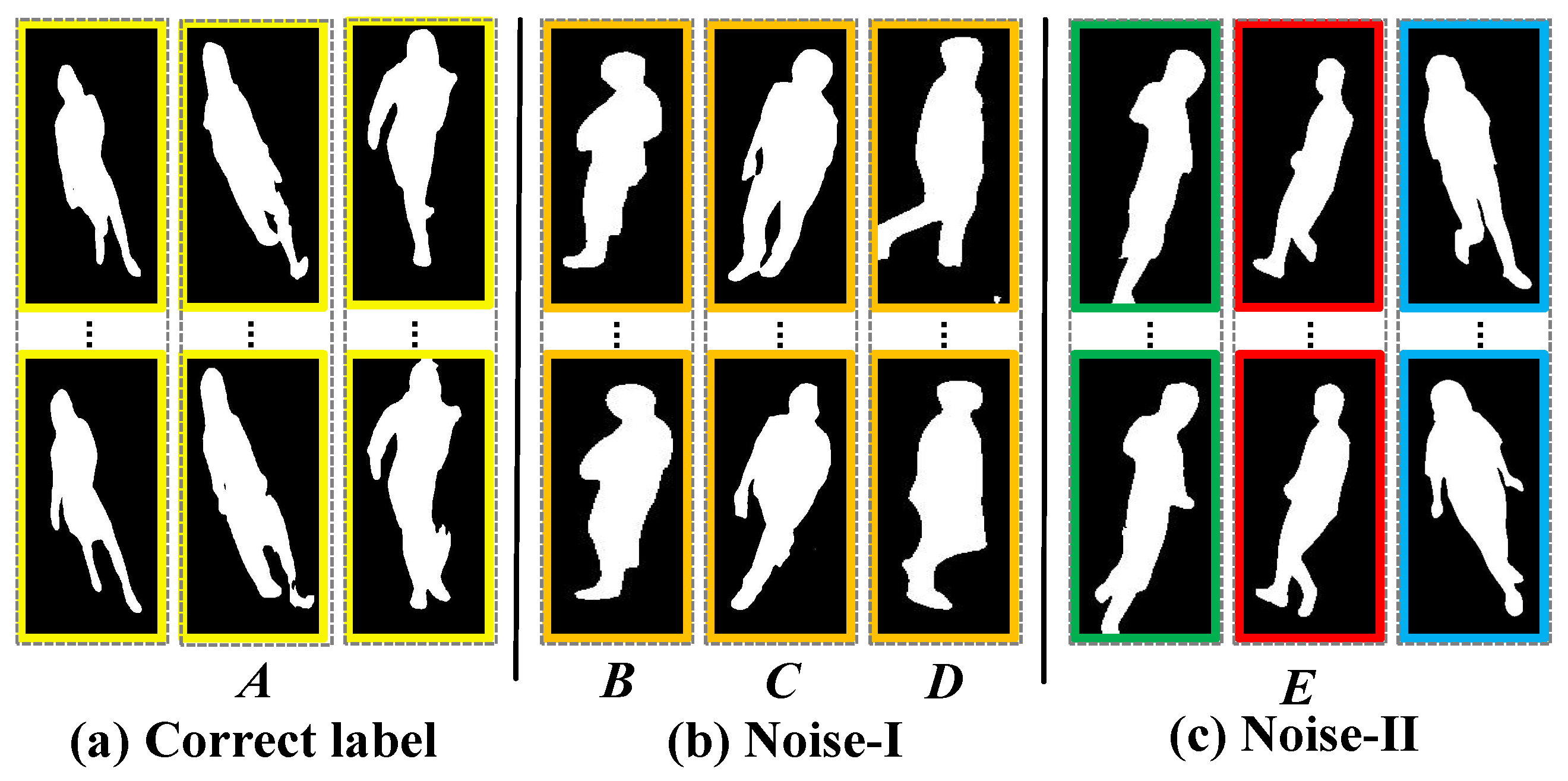 - Yu, W.; Yu, H.; Huang, Y.; Cao, C.; Wang, L. CNTN: Cyclic Noise-tolerant Network for Gait Recognition. arXiv 2022, arXiv:2210.06910. [Google Scholar] [CrossRef]