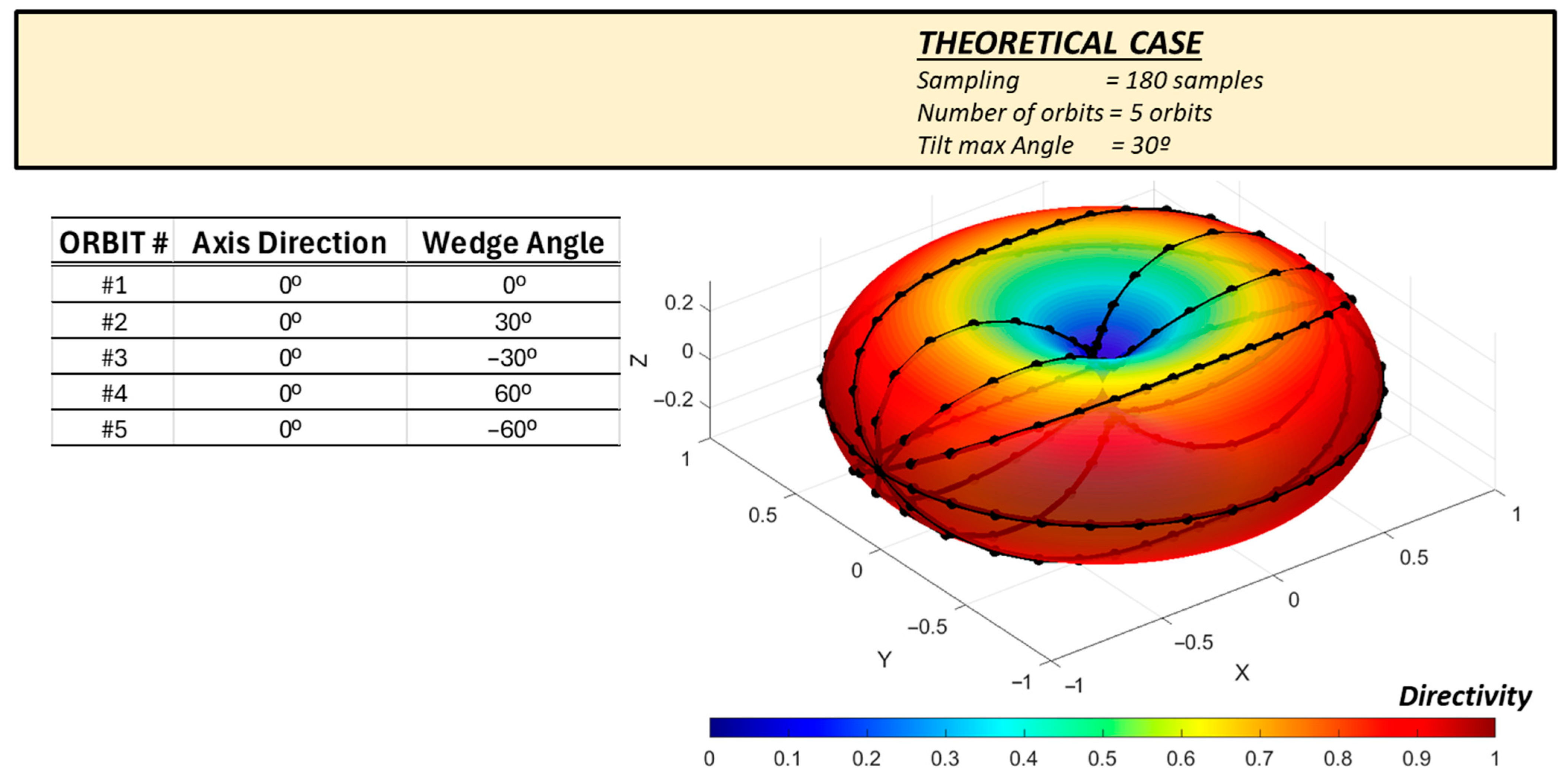 First, future studies should aim to refine the spatial configuration of the TOS. This includes optimizing the number of orbits, their inclination angles, and the azimuthal orientation of their rotational axes, all while preserving the main practical advantage of the method: a reduced-cost measurement process. Balancing angular coverage and sampling efficiency against infrastructure limitations (e.g., chamber size, mechanical rotation constraints, and acquisition time) will be key to expanding the method’s applicability.