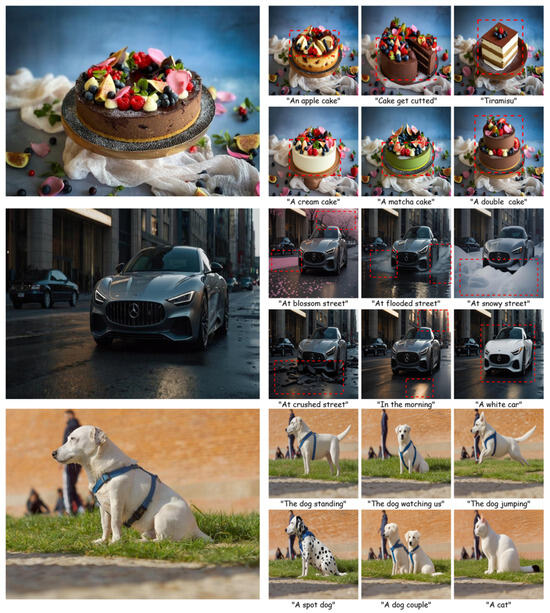 - Hertz, A.; Mokady, R.; Tenenbaum, J.; Aberman, K.; Pritch, Y.; Cohen-Or, D. Prompt-to-prompt image editing with cross attention control. arXiv 2022, arXiv:2208.01626. [Google Scholar]