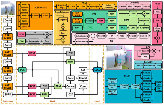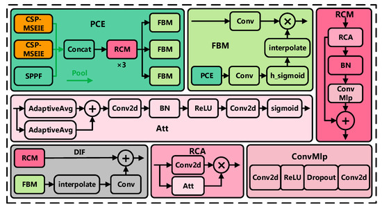 To tackle the challenge of diminished detection accuracy for minute targets in insulator and wind turbine blade inspection, this paper employs a method that strengthens multi-scale feature fusion. The core objective is to augment the semantic richness of features associated with small targets while preserving their fine-grained spatial details, thereby enhancing the model’s classification and localization precision. To realize this objective, we introduce a complete reconstruction of the neck network, termed CGRFPN, which is architecturally founded upon two novel components: the Rectangular Self-Calibration Module (RCM) and the Pyramid Context Extraction (PCE) module, as depicted in Figure 3.