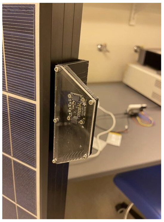 The sensing enclosure connected to the PV panel.