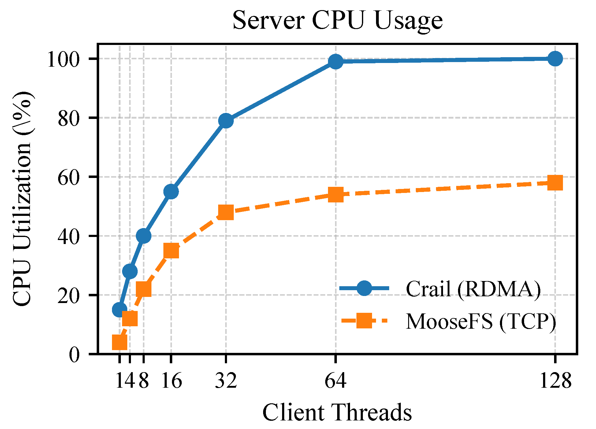 - Crail [24]: An RDMA-optimized user-space distributed file system that uses the DaRPC communication library for metadata access. Crail interacts with the file system via crail-fuse, a FUSE-based client implementation.