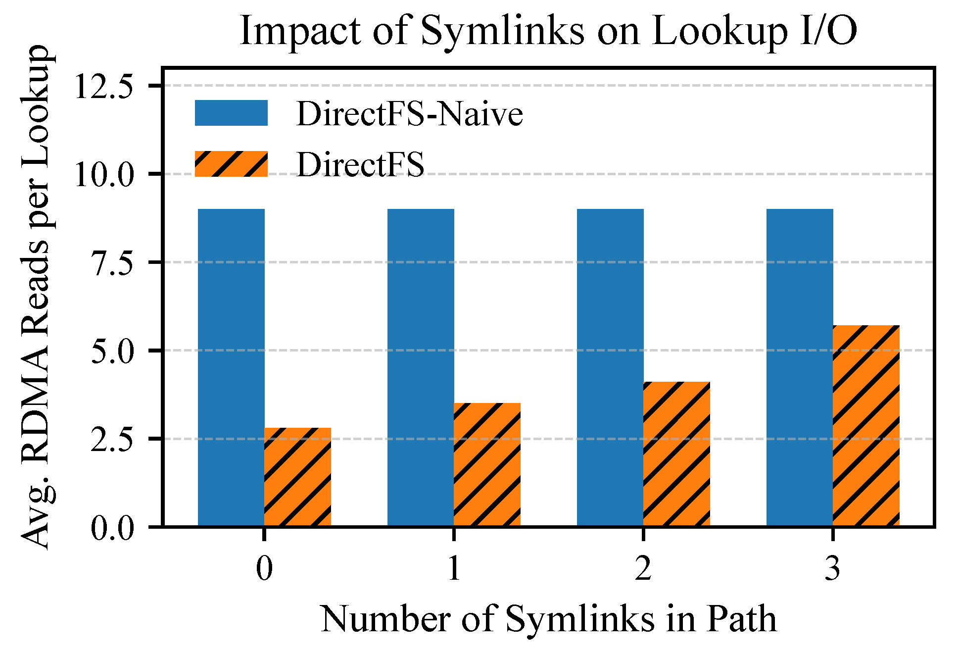 - DirectFS-Naive: a baseline that performs RDMA-based per-component traversal without any indexing or prefetching;
