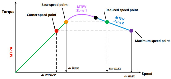 - Fadel, M.; Sepulchre, L.; Pietrzak-David, M. Deep flux-weakening strategy with MTPV for high-speed IPMSM for vehicle application. IFAC-PapersOnLine 2018, 51, 616–621. [Google Scholar] [CrossRef]