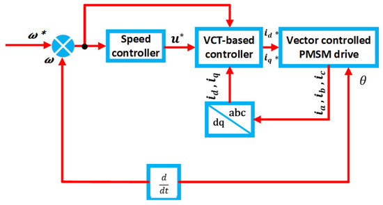 The PMSM is a crucial contemporary alternative to the IM due to its better torque density and efficiency. In contrast to induction machines, PMSMs may run at a steady frequency on AC mains. Specific approaches between the position of the rotor magnets and the AC excitation frequency source are required for PMSMs to be synchronized. Because of this, the PMSM is more beneficial for variable speed drives (VSDs) even though the high cost of power electronics is offset by the many long-standing benefits of the PMSM, like its excellent efficiency and quick dynamic response. Furthermore, permanent magnetic motors are being used in more demanding applications due to the availability of low-cost, improved applicable solutions for power electronics [50].