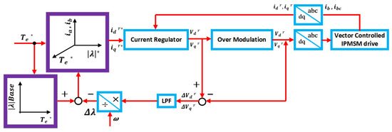 - Kim, H.-S.; Sul, S.-K. Real-time Torque Control of IPMSM under Flux Variations. IEEE J. Emerg. Sel. Top. Power Electron. 2022, 10, 3345–3356. [Google Scholar] [CrossRef]