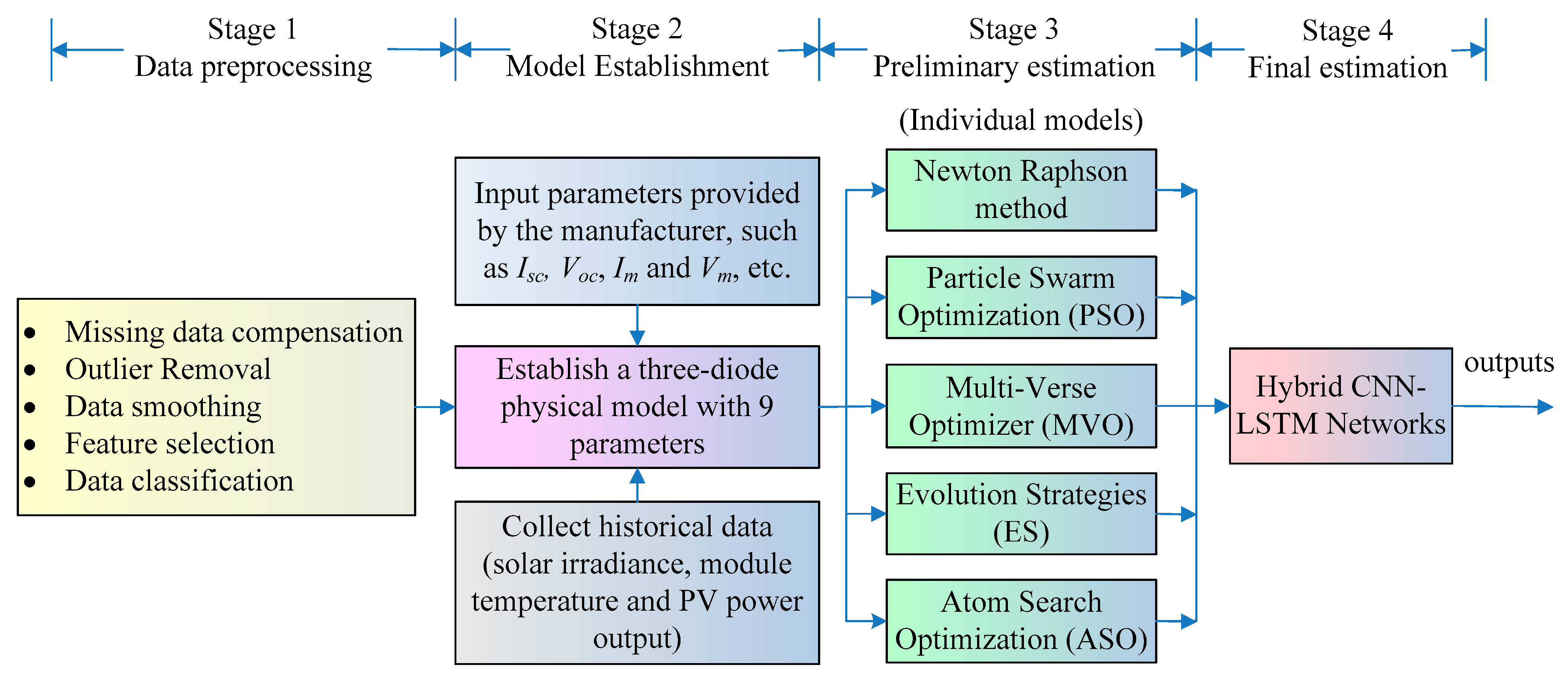 - As the output power of PV systems decreases due to degradation and parameter drift, the proposed ensemble method integrates multiple optimization algorithms to enhance prediction accuracy, thereby improving the reliability of practical deployments.