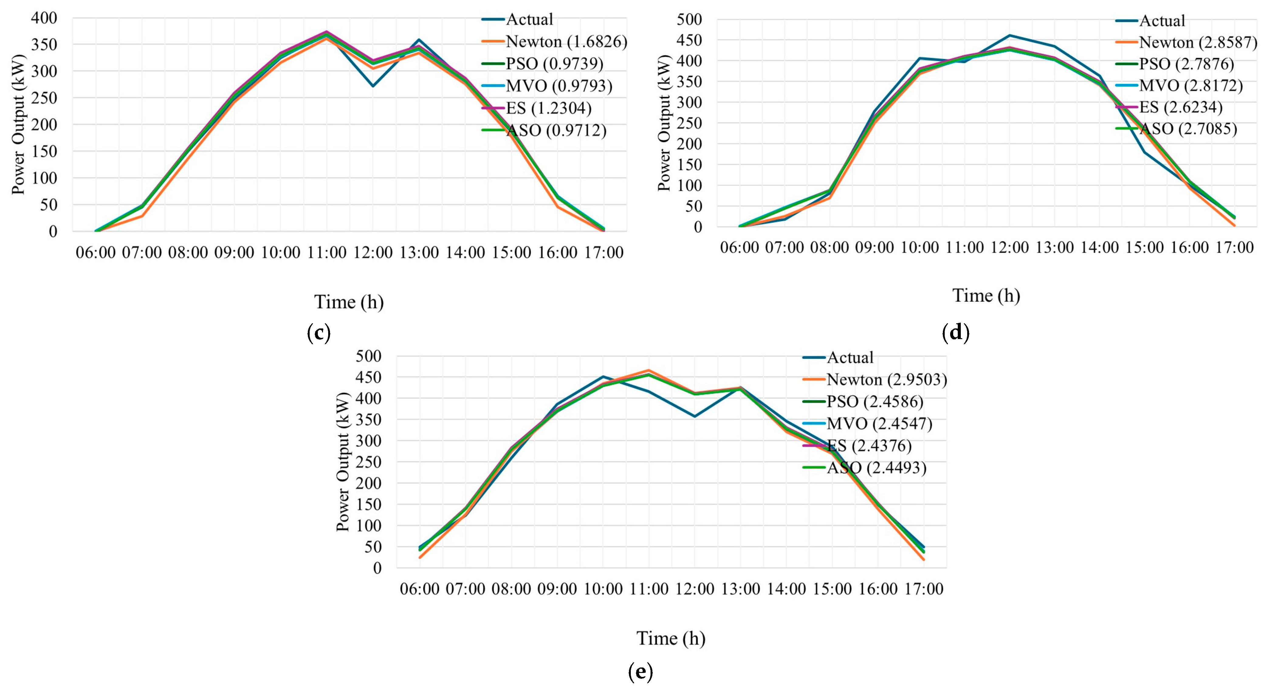 | Weather Conditions | Newton | PSO | MVO | ES | ASO |