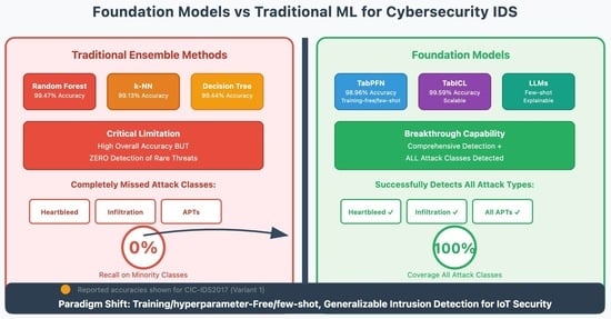 Our findings suggest that the cybersecurity community’s continued investment in increasingly sophisticated ensemble methods may represent a suboptimal research direction. The fundamental advantages demonstrated by foundation models—comprehensive threat detection, training-free deployment, and robust generalization—indicate that future advances in cybersecurity machine learning should prioritize foundation model development over traditional ensemble refinement.