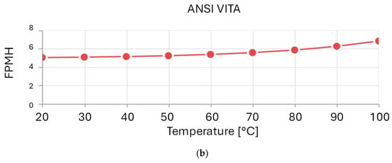 Moreover, Figure 9b shows also the FPMH predicted using the ANSI VITA standard up to a maximum temperature of 100 °C. As expected from Equation (2), the process rate governing component aging follows an Arrhenius-type behavior: as the temperature increases, the number of activated defects rises, leading to higher FPMHs more than doubled for the more pessimistic standard.