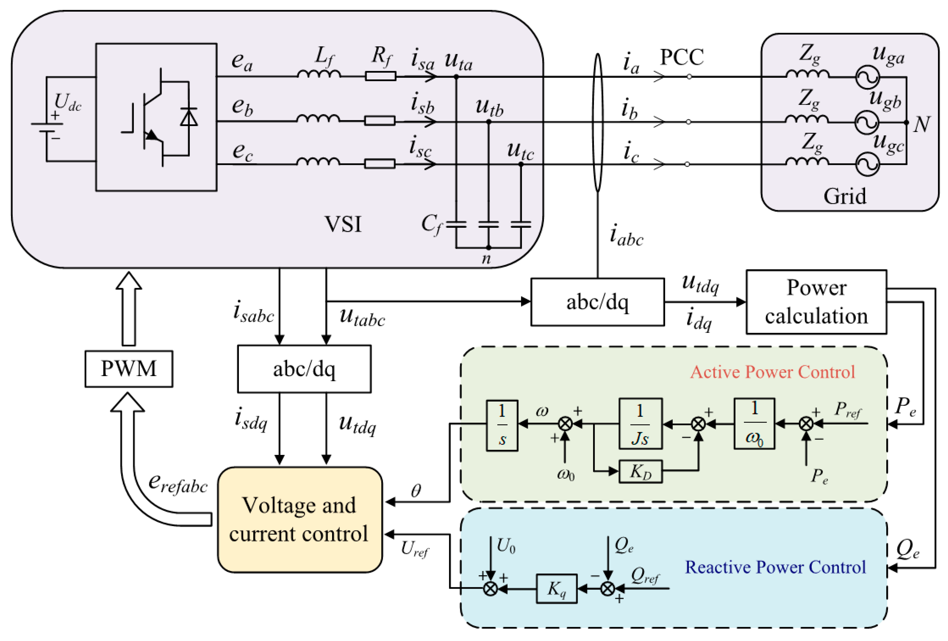 - Shen, C.; Gu, W.; Sheng, W.; Liu, K. Transient stability analysis and design of VSGs with different dc-link voltage controllers. CSEE J. Power Energy Syst. 2024, 10, 593–604. [Google Scholar] [CrossRef]