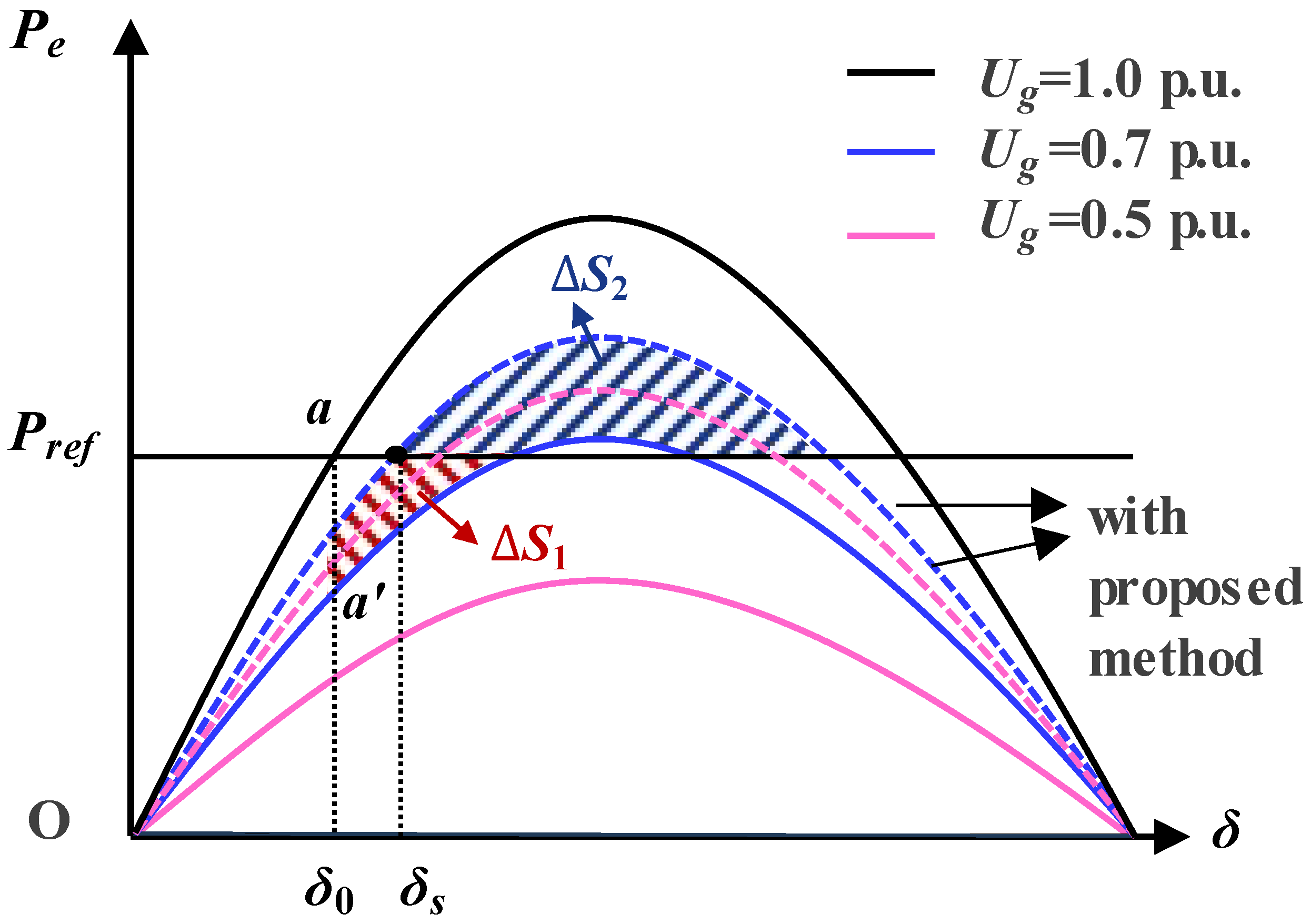 - A method to improve transient stability during voltage dips in the grid is proposed. It not only restores the transient stability of a VSG under slight voltage dips but also restores the EP of the system under severe voltage dips and maintains stable operation.