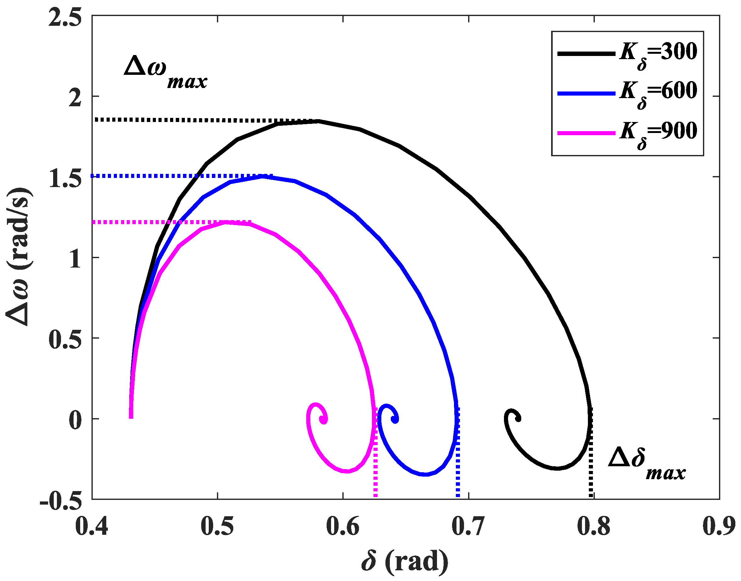 | Set the critical power angle δr at the UEP as π. If δ > δr (system is destabilized), then set Kδ = Kδ + 1 and go to Step 2. If δ < δr (system is stabilized), then terminate the loop and set Kδmin = Kδ. |