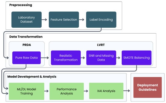 Overview of the dual-path methodological framework. The workflow contrasts the idealized PRDA pathway against the LVRT pathway, which simulates real-world operational stress, to enable a systematic analysis of model performance and interpretability.