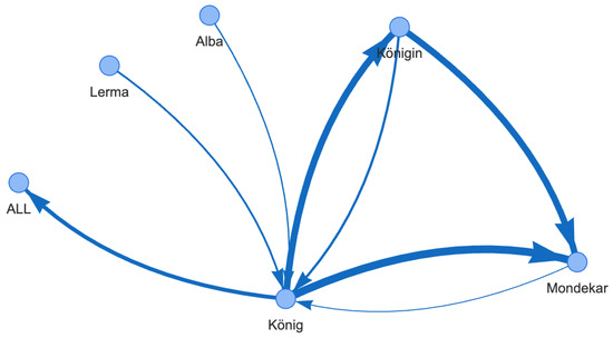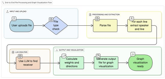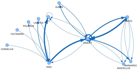 - Generating directed, weighted graph models of character interactions, enabling finer-grained SNA metrics for theatrical discourse. Our end-to-end pipeline processes raw TEI-encoded dramatic texts, automatically identifies speaker–addressee relationships with high accuracy across four languages, and creates the participant graph that is rendered online. We release our code containing the pipeline and model prompts as open source at https://github.com/upb-nlp/METRA (accessed on 14 August 2025).