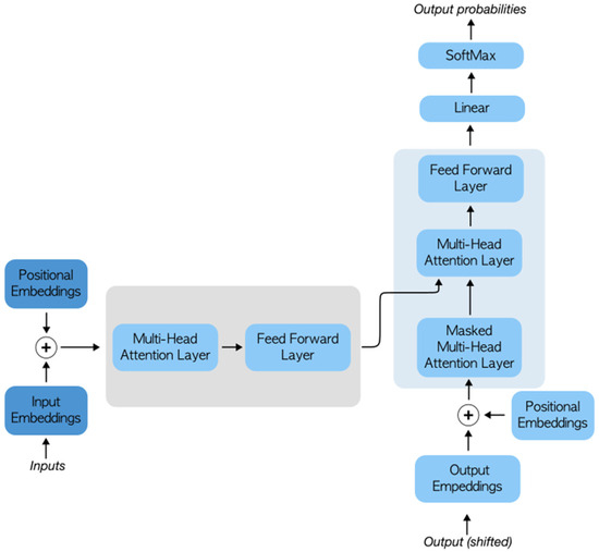 - Vaswani, A.; Shazeer, N.; Parmar, N.; Uszkoreit, J.; Jones, L.; Gomez, A.N.; Kaiser, Ł.; Polosukhin, I. Attention Is All You Need. In Proceedings of the 31st International Conference on Neural Information Processing Systems, Long Beach, CA, USA, 4–9 December 2017; pp. 6000–6010. [Google Scholar]