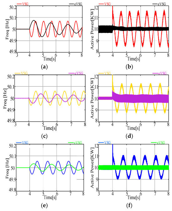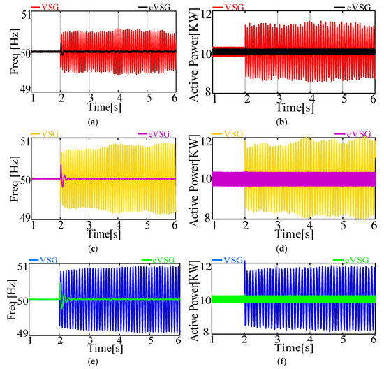 - By comparison of the VSG and eVSG systems from a perspective of oscillation and its transfer, it can be concluded that, in a wide range of grid inertia levels (Jp from 0.0125 to 1) and grid-tied systems, the eVSG strategy has significantly better performance on robustness than the VSG strategy when suffering same disturbance.