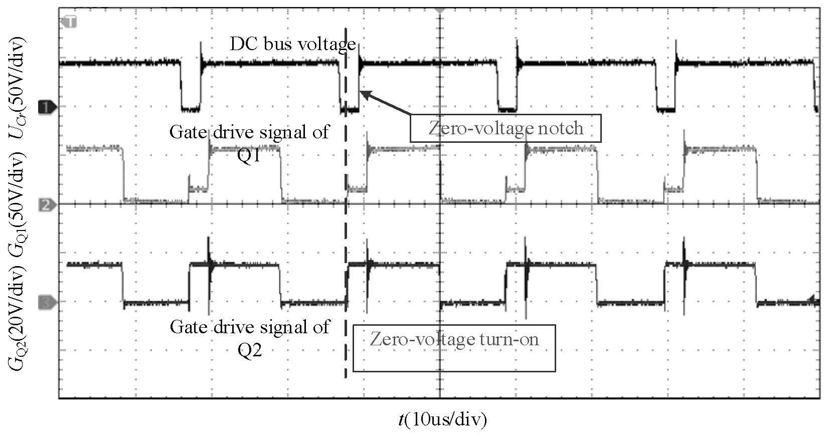 - To enable main switches Q1 and Q2 of the half-bridge circuit to turn on under zero-voltage conditions, the parameters Iset, L1, and Cr must be chosen such that the DC bus voltage is effectively reduced to zero. According to Equation (3), the selection of these three parameters shall satisfy: