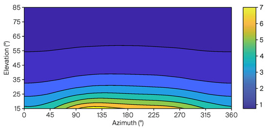 Variation of (), directly contributed by IMB here, with azimuth and elevation angle.