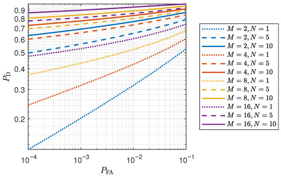Here, is the Gamma function. The relationship between the detection probability and the false alarm probability is given by the following equation: