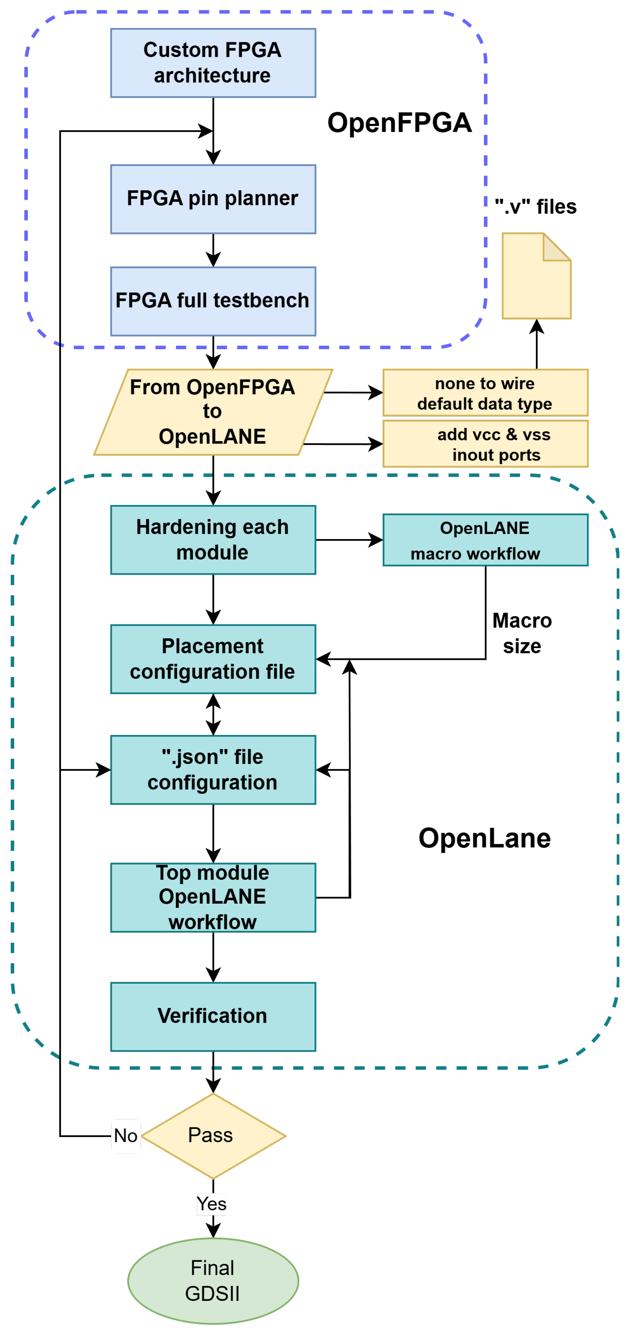 Figure 3 illustrates the comprehensive workflow followed to obtain a successful GDSII file for an FPGA design.
