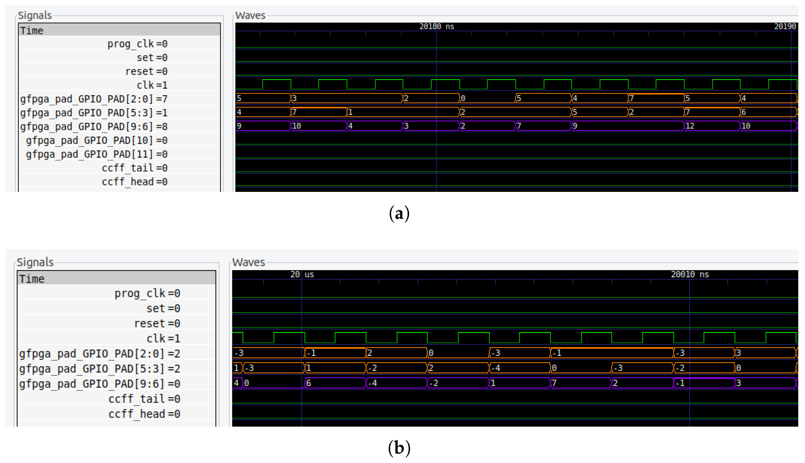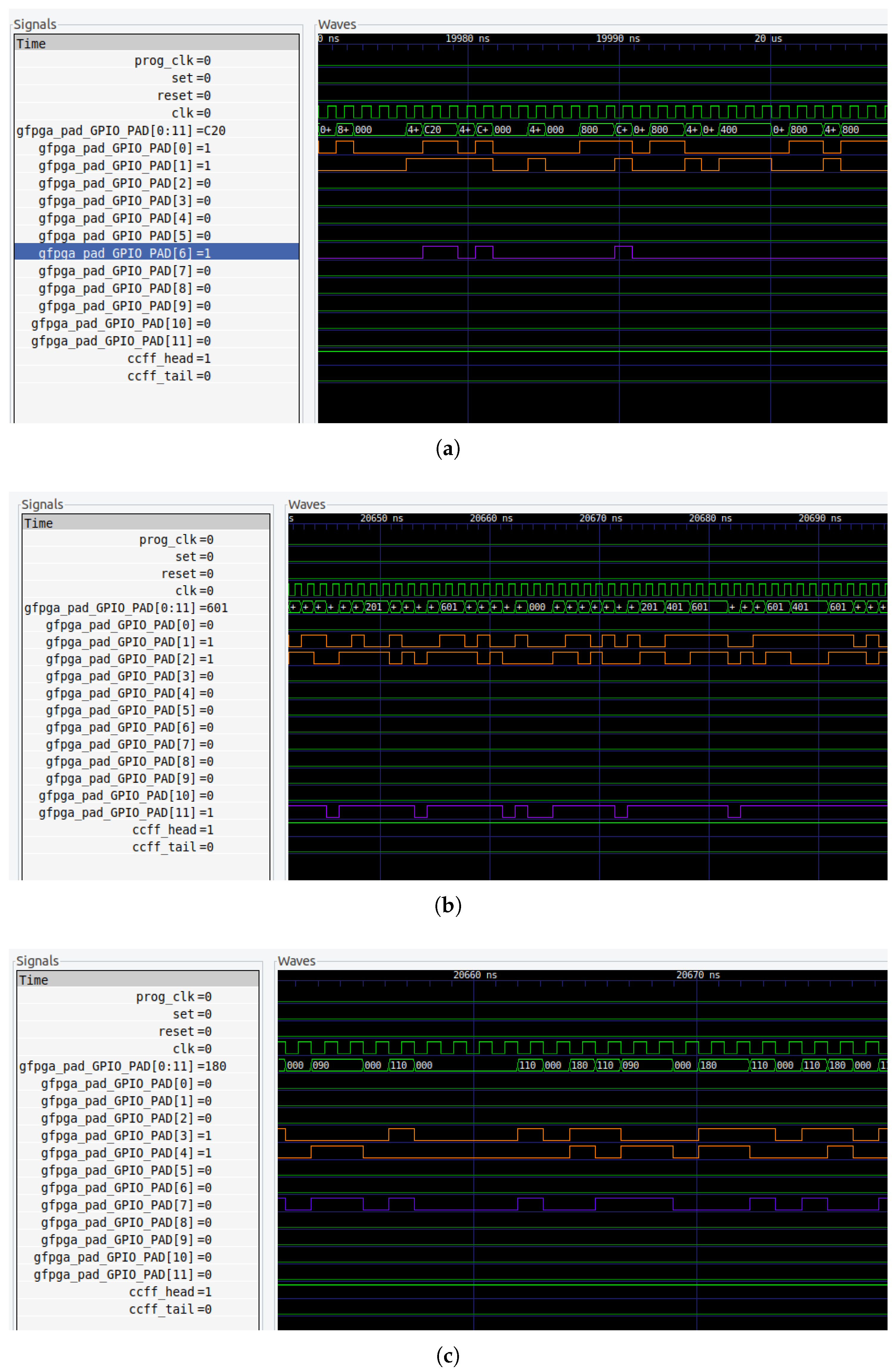 reset signals, used to initialize the FPGA state; and finally,